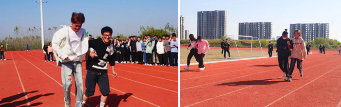 运动会在街舞社的火热表演中拉来帷幕,全校28支学生队伍参加,采取积分赛制。第一项“两人三足”接力赛,选手们两两一组,听哨后两人同时启动,最快到达终点的队伍获胜。各参赛各队团结协作,坚持不懈,默契配合,在场上展开激烈角逐。