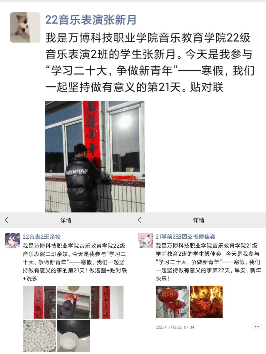 音乐教育学院团总支开展“学习二十大 争做新青年”寒假打卡活动