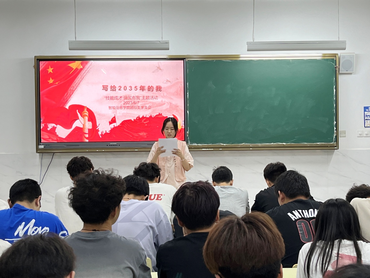 为深入学习贯彻党的二十大精神,引导学生结合所学专业展望美好前景,明确努力方向,树立远大理想。根据省教育厅关于开展“技能成才 强国有我”系列教育活动精神,智能信息学院团总支学生会于6月7日晚在1305教室开展“写给2035年的我”主题演讲活动。