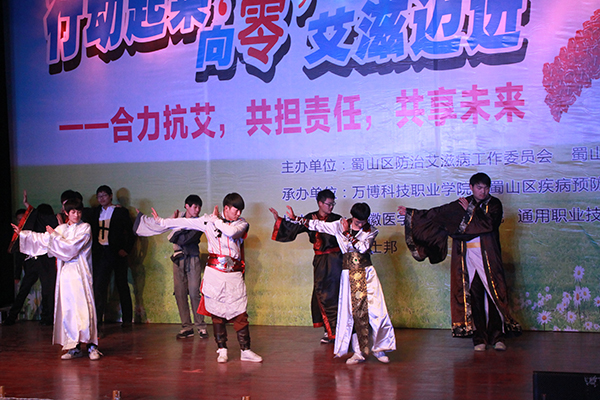 12月4号晚,由蜀山区防治艾滋病工作委员会、蜀山区卫计局主办,万博科技职业学院、蜀山区疾病预防控制中心承办,安徽医学高等专科学校、合肥通用职业技术学院以及杰士邦协办的“一米阳光,让爱绽放”大型文艺晚会在我院报告厅隆重举行。