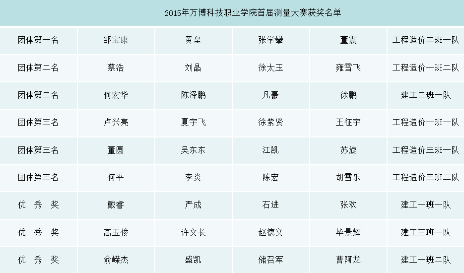 期间,参赛的9个小组围绕分水准测量和角度测量两部分内容展开激烈角逐,经过一个半小时的激烈角逐,比赛名次一一揭晓,由工程造价二班一队夺得大赛团体第一名,由工程造价一班二队以及建工二班一队夺得大赛团体第二名,由工程造价一班一队、工程造价三班一队、工程造价三班二队获得团体第三名,由建工一班一队、建工三班一队、建工一班一队获得大赛优秀奖。