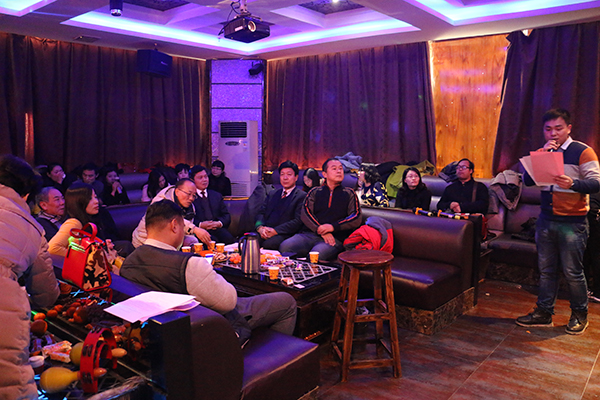 载歌载舞迎新年,凝心聚力创辉煌。为丰富教职工文化娱乐生活,加强校园文化建设,同时也是为了对教职工在过去一年里辛勤付出的肯定,1月18日下午,我院财经分院与管理分院联合举办了2016年教职工迎新春联欢会,学院副院长兼管理分院院长刘瑞平、财经分院院长李德明、财经分院副院长张静、管理分院副院长徐家骅及管理分院、财经分院全体教师和专、兼职辅导员共同参加了联欢会。联欢会还邀请到了实验室管理中心主任葛志煜,基础部部长连安立,团委副书记、保卫部部长周冕,学工部副部长杨晓芸作为评委嘉宾出席了联欢会。