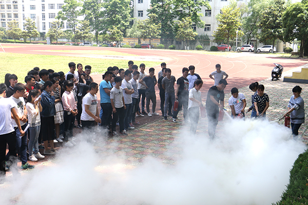 随后,为提升同学们应对防火、灭火等突发事故应急营救能力,我院团委学生会和校卫队全体成员在保卫部部长周冕的带领下,在运动场上开展了一场消防演练,同学们在演练过程中对灭火器的操作有了更深的认识,对防火常识有了更多的了解。