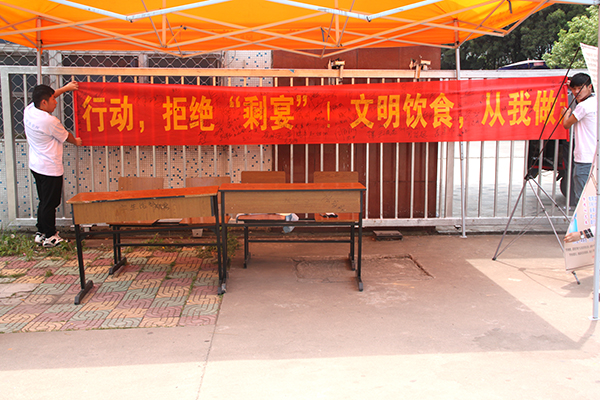 为了引起广大师生的重视,生活部组织同学们在条幅上签名支持“光盘行动”,并在食堂或者周边地区随机拍摄浪费粮食的照片,制作成展板、海报,予以警示及提醒。