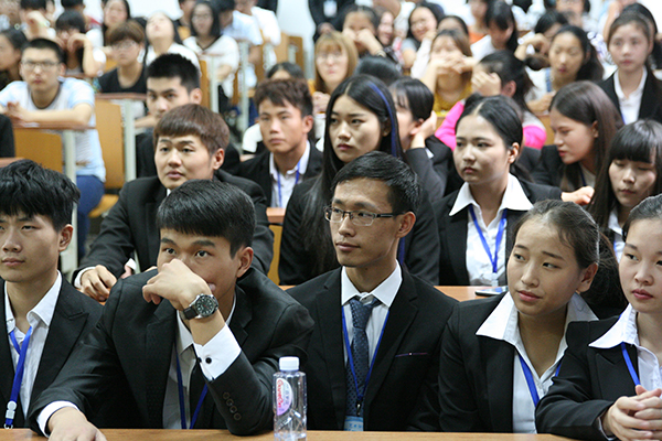 院长助理刘静通过跟同学们分享大学生活中常见的问题,来谈大学生活的三个改变,即改变方向、改变学习态度、改变学习渠道,并对三个改变作了深入的阐述。随后,刘静老师与同学们分享了学生的优秀作品,向2016级全体新生提出了“多一点选择机会,变成一个有能力的人”的殷切希望。