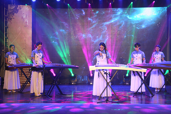 琵琶独奏《十面埋伏》,演奏技艺娴熟,曲调震撼人心,生动再现了项羽被大军围困时走投无路的场景;流行歌曲《不为谁而作的歌》展现万博学院青年学生的别样风采,戏曲《梨花颂》,展现了中国传统文化的无穷魅力,唱作俱佳的表演赢得观众掌声如雷;16级新生萨克斯独奏《我只在乎你》、笛子独奏《骏马奔驰保边疆》以及古筝五重奏《琵琶语》,曲风或委婉或激昂,如行云流水又跌宕起伏,展现了万博学子高超的音乐才能。