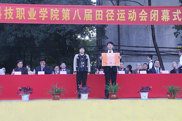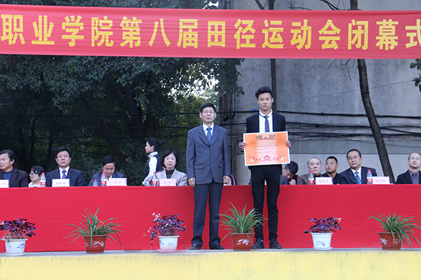 教务部部长、第八届田径运动会副主任张进首先宣读了各单项比赛前三名、团体总分前三名及获得体育道德风尚奖的团体。随后,学院领导分别为获得金牌、银牌、铜牌的运动员个人和获奖团体颁奖。