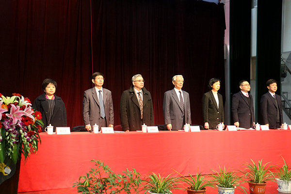全体起立,大会在激昂的国歌声中拉开帷幕。
