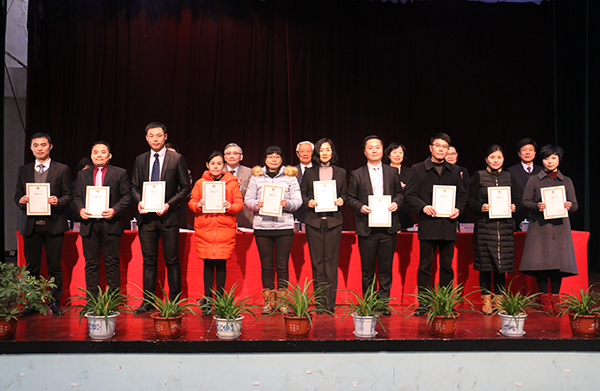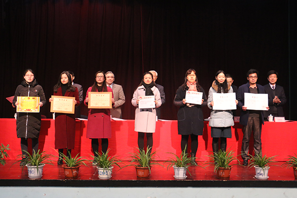 副院长刘瑞平首先宣读了《2016年安徽省职业院校技能大赛(高职组)获奖项目及指导老师名单》、《2016年度高等学校省级质量工程获奖名单》、《2016中国大学生计算机设计大赛安徽省级赛获奖项目及指导老师名单》、《2016年全国大学生英语竞赛安徽赛区获奖项目及指导老师名单》 、《2016年首届安徽省大学生国际贸易综合技能大赛获奖项目及指导老师名单》、《第二届安徽省“互联网+”大学生创新创业大赛获奖项目及指导老师名单》;副院长陈文达在会上宣读了《“昆山花桥杯” 第十一届安徽省大学生职业规划设计大赛暨大学生创业大赛获奖项目及指导老师名单》、《2016年度娃哈哈全国高校营销大赛获奖项目及指导老师名单》、《万博科技职业学院第八届教师基本功大赛获奖老师名单》、《万博科技职业学院2016年度特殊贡献奖名单》等,随后由学院领导分别为获奖教职工颁发荣誉证书。