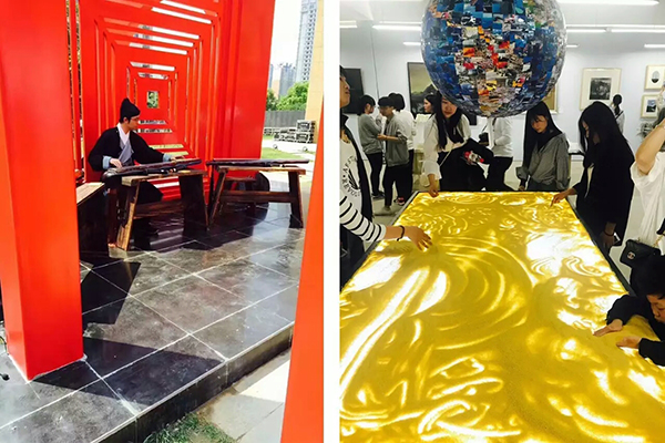 当天,我院艺术分院2015、2016级各专业学生代表60余人乘坐校车前往展览现场。其中,艺术分院音乐表演专业徐玉和室内专业张杰两位同学参与表演的 “行为艺术+实验戏剧”《醒》拉开了本次展览的序幕。