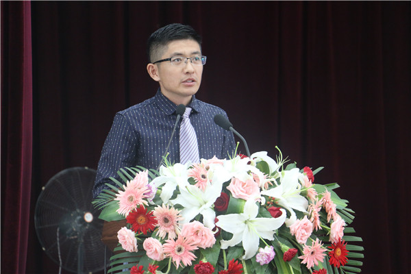 杨东至老师作为教师代表在典礼上发言,代表全体教师向全体毕业生表示祝贺。他表示,三年时光,见证了同学们从大一的懵懂青涩到毕业时的成熟稳重,希望同学们今后能无愧于自己,无愧于生活,无愧于时代赋予我们的神圣使命。