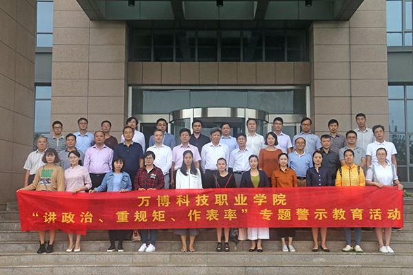根据市委和市教育局党委关于在全市党员干部中开展“讲政治、重规矩、做表率”专题警示教育统一部署,9月27日上午,万博科技职业学院组织院党政领导班子、中层干部、党支部成员和2017年获得市教育系统和学院的“优秀党员”共37人前往安徽省党风廉政教育基地参观学习,接受警示教育。