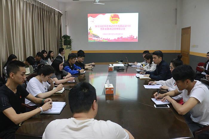 5月8日下午,院团委在行政楼3楼会议室举行座谈会,学习习近平总书记在纪念五四运动100周年大会上的重要讲话精神,院团委副书记司斌斌及各学生组织代表参加此次座谈会。会议由院团委副书记司斌斌主持。