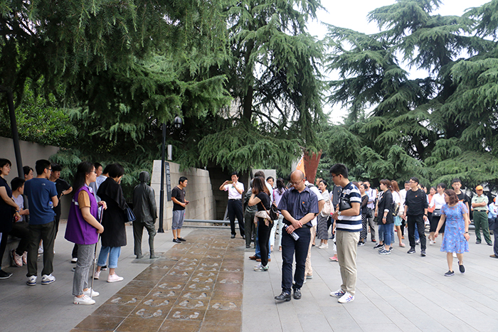 在侵华日军南京大屠杀遇难同胞纪念馆,“家破人亡”的主题雕塑、粗黑“刺眼”的“300000”一下子将我们带回了1937年的12月,带回了当时身处“人间地狱”的古城南京。一幅幅、一幕幕惨绝人寰的真实影像,都在控诉着那段每个中国人都永不能忘却的民族之殇。这段屈辱的历史使党员更加深入了解中华民族的苦难历程,大家怀着沉痛、悲愤的心情坚定地表示:前事不忘,后事之师;勿忘国耻,吾辈自强;不忘初心,牢记使命。