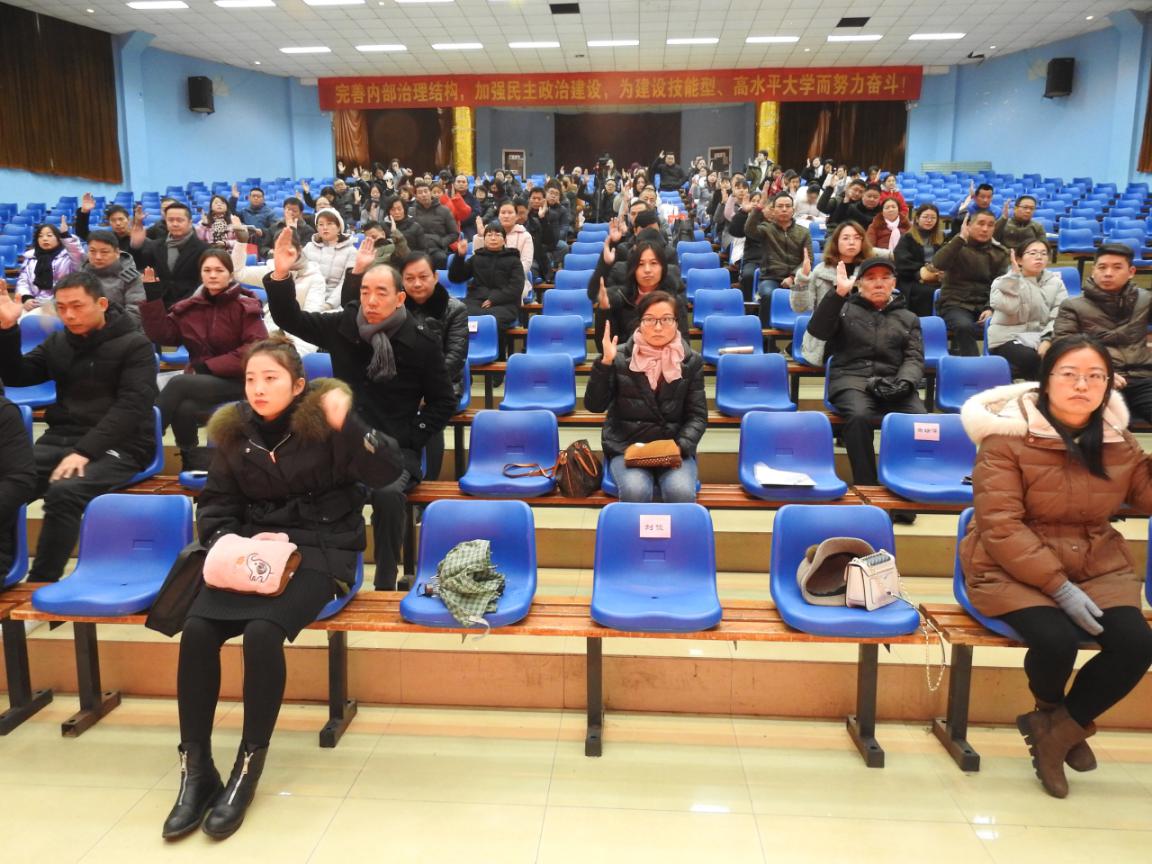 当日下午,与会人员表决通过了《万博科技职业学校教职工大会实施细则》和《万博科技职业学院教职工大会暨第三届一次工会会员大会决议》。