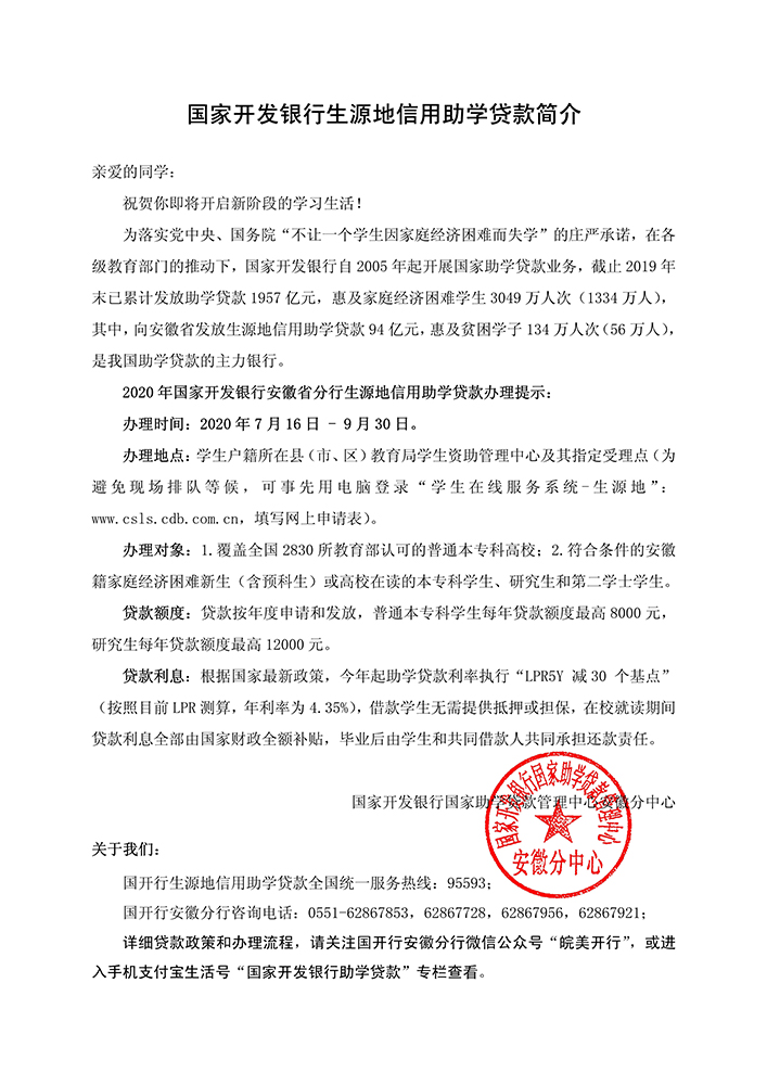 2020年安徽省农村商业银行生源地信用助学贷款办理指南