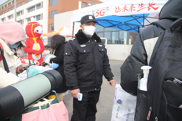 春季开学,我校严格遵守疫情防控相关要求,落实学生报到流程。保卫部门提前安排了绿色通道,指派专人做好维护和服务工作。保持1米以上距离、扫描安康码、行程码、测量体温、行李消毒等,报到现场秩序井然。