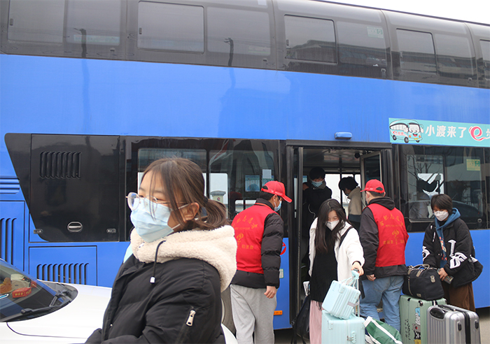 为保障学生返校交通安全,学校安排了公交专线接送学生返校,以保障学生交通的便利和安全。校团委组织学生志愿者提前在学校南门迎接同学们返程,为他们提供帮助。校学生会还精心准备了 2022北京冬奥会吉祥物“冰墩墩”、“雪容融”在门口一同迎接,并开展冬奥会答题竞赛活动,与同学们一起重温了北京冬奥精彩,为开学增添了不一样的乐趣。
