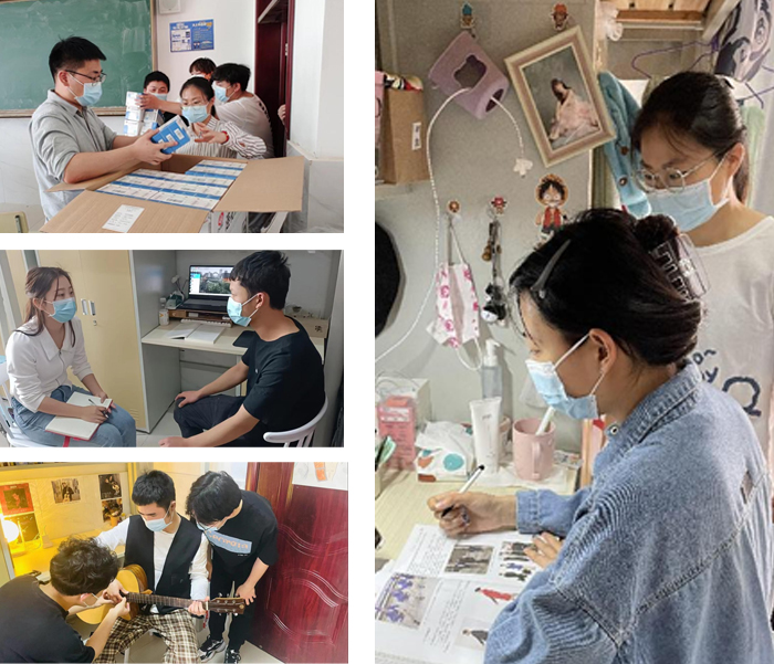 在这特殊的时期里,为防止聚集,学校食堂将堂食关闭,改成供应盒饭,每日提前统计校内师生三餐人数,定时定点给所有人员运送盒饭。为进一步改善就餐标准并避免聚集,食堂与学工部协作,制订了学生分时段取餐办法,并通过监督调查稳定菜价,保证学生吃饱吃好。学校物业除了日常卫生保洁外,对食堂、行政楼、教学楼、宿舍等公众区域每日两次消毒,对电梯、走廊等重点处进行多次消毒,保证校园每天的垃圾清运清理工作正常运转。封控期间,宿管阿姨们更是毫不懈怠,夜间查房量比以前增加一倍。她们随时关注学生情绪变化,关心他们身心健康状态,每天不定时对宿舍进行巡视,提醒同学们进宿舍先洗手消毒,不窜门不聚集,不使用违规电器,保持室内空气流通,及时倒垃圾,共同维护宿舍楼栋的清洁、安全。物业安保的全体工作人员始终坚守岗位,做到守土有责、守土担责、守土尽责,扎实有效地开展多项防控工作,为全体师生守好“防疫大门”,全方位守护校园安全。他们加大校园消防、夜间巡逻、围墙护栏巡查力度以及强化治安管控等,坚守岗位,尽职尽责,用责任和担当筑起了抗击疫情的坚固防线。