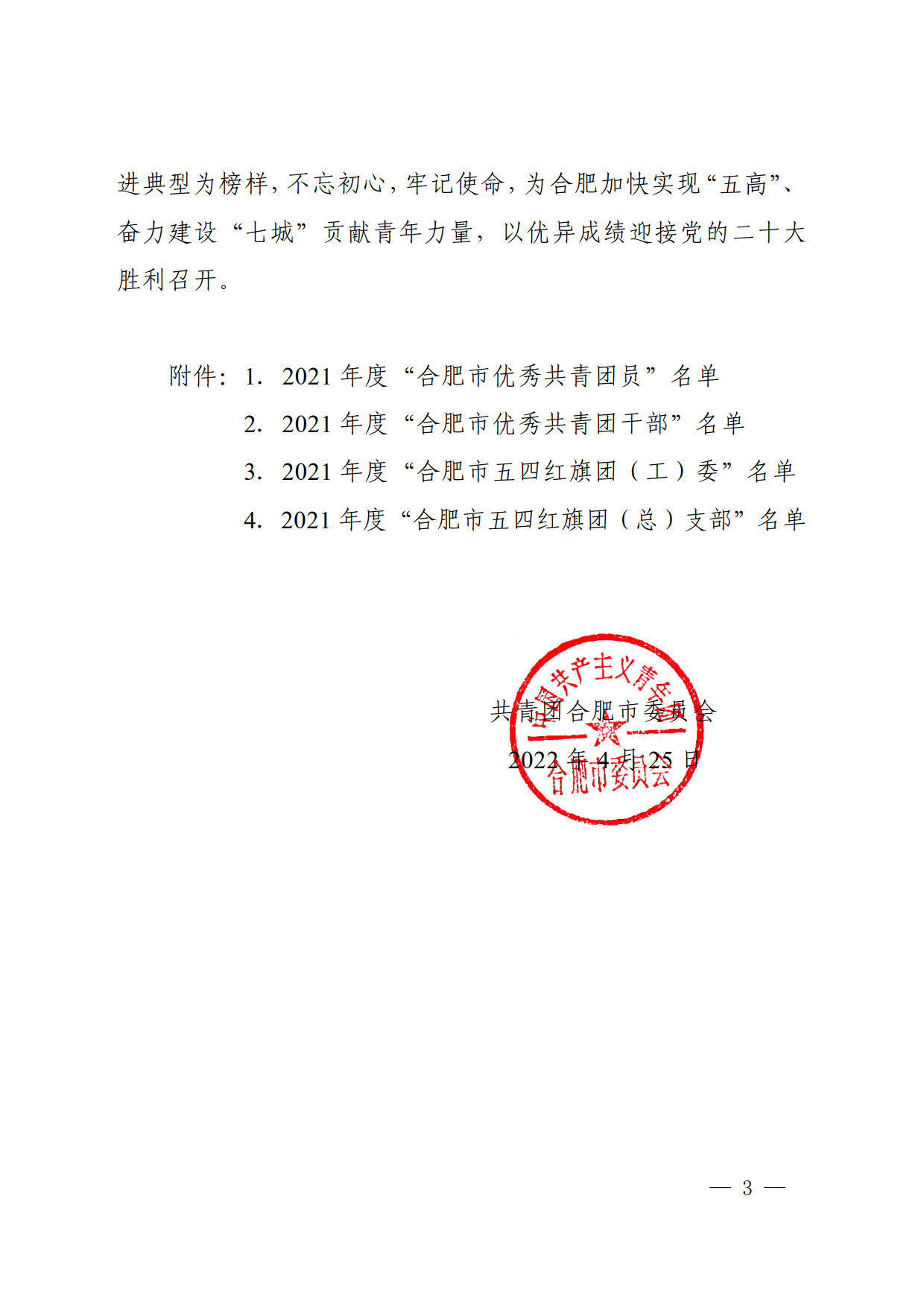 此次表彰既是对我校共青团2021年度工作的肯定,也是对我校广大团员、团干部和各级团组织的鞭策和鼓励。2022年是中国共产主义青年团建团一百周年,我校共青团将在校党委的领导下和上级团组织的指导下,不忘初心,牢记使命,继续团结带领广大团员青年,为合肥加快实现“五高”、奋力建设“七城”贡献青春力量,以优异成绩迎接党的二十大胜利召开。