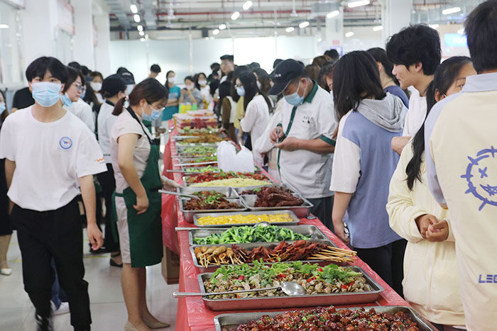 为弘扬中华美食文化,秉承绿色健康理念,最大程度满足我校封校期间大学生多样化饮食的生活需求。5月15日下午,我校团委联合煜泉餐饮在校食堂二楼隆重举办了万博科技职业学院第一届博园新“食”代美食节,全校师生在遵照日常防控要求下,有秩序、有热情、有温度地享受了一场“舌尖上的盛宴”。