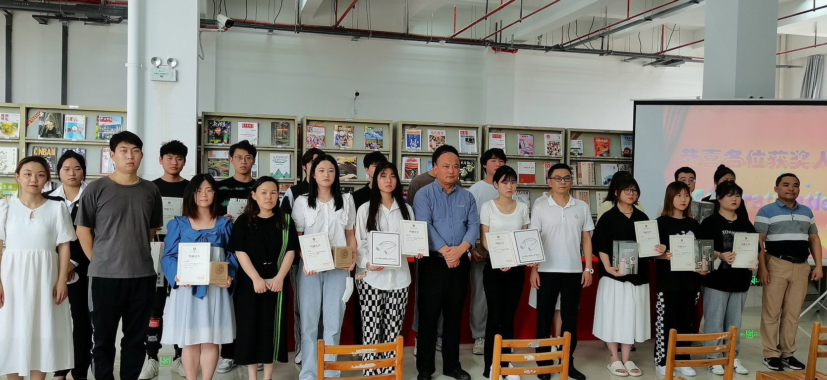 6月5日下午14:30,在我校图书馆一楼,举行了第27个世界读书日系列活动暨朗读者微视频大赛颁奖仪式。校党委副书记、副校长张进,图书馆馆长陈照强,团委副书记王媛媛出席了颁奖仪式,并为获奖学生颁发证书和奖品。