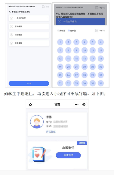 如测评者中途退出,再次进入小程序可继续答题,如下图: