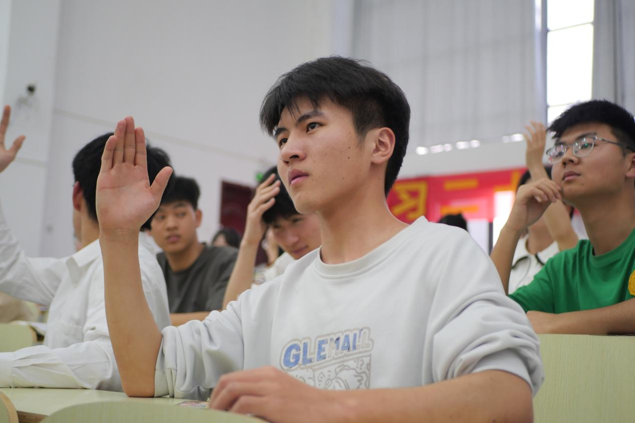知识问答环节,主持人宣布比赛规则及要求,答题内容围绕党的二十大报告、党史知识等有关内容。参赛选手们冷静思考、沉着应答、密切配合,充分运用二十大知识储备,将比赛一次次推向高潮。现场气氛热烈,营造起以赛促学、以赛促思的良好氛围,展示了我校学生积极向上的精神风貌。