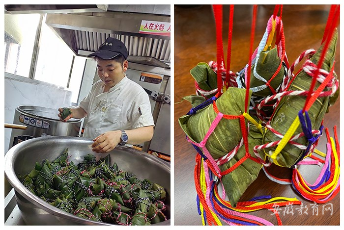 赛后,一个个蒸熟的粽子被端上餐桌,师生共同分享劳动成果,感受浓浓的节日气氛。