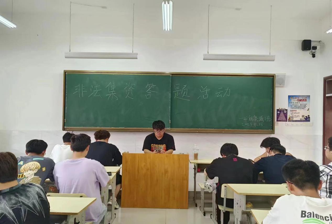 活动伊始,各班级团支部召开防范非法集资主题团日,从非法集资的含义、基本形式、如何识别非法集资、如何保护自身财产安全四方面深入,通过案例等形式帮助学生了解非法集资的过程与危害,总结非法集资的特点。同学们就如何识别非法集资等方面进行知识答题,引导教育同学们自觉远离非法集资,守护好同学们的“钱袋子”。