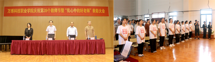 在教师节来临之际,为感谢老师的辛勤工作和无私奉献,9月8日下午,学校在音乐教育学院实训中心二楼礼堂举行庆祝第39个教师节活动暨“我心中的好老师”表彰大会。省教育厅督导专员、校党委书记鲍习生,校党委副书记、执行校长张进,校党委委员、副校长耿瑜,校党委委员、副校长马赞出席大会。大会由校团委、人事部联合举办,校团委书记王媛媛主持会议。