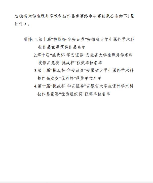 我校在第十届“挑战杯·华安证券”安徽省大学生课外学术科技作品竞赛中,两支队伍获得“三等奖”。