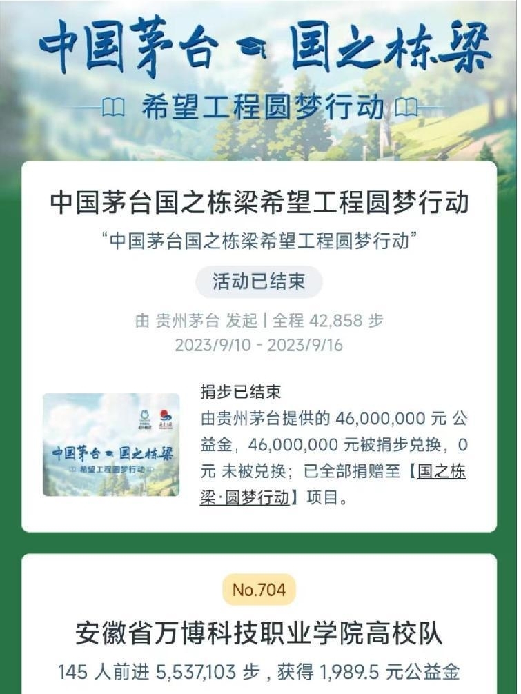 本次捐赠活动通过“一元捐”和“一块走”以每日捐步的方式来获得公益基金的筹集,此外在“中国茅台•国之栋梁”公益活动中筹款共计2089元,为中国希望工程事业贡献出一份力量。在活动现场不少同学前来了解,而在场工作人员对爱心捐赠的同学也积极耐心的进行讲解,确保将爱心公益活动意义宣传到位。