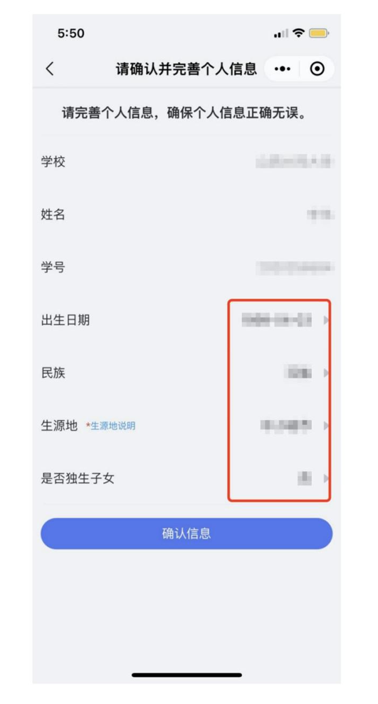 第三步:完善个人信息,点击“确认信息”,进入测试界面