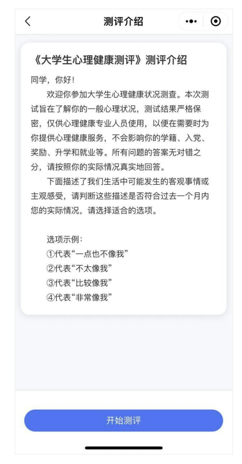 第六步:阅读完毕后点击“开始测评”进入答题页面。