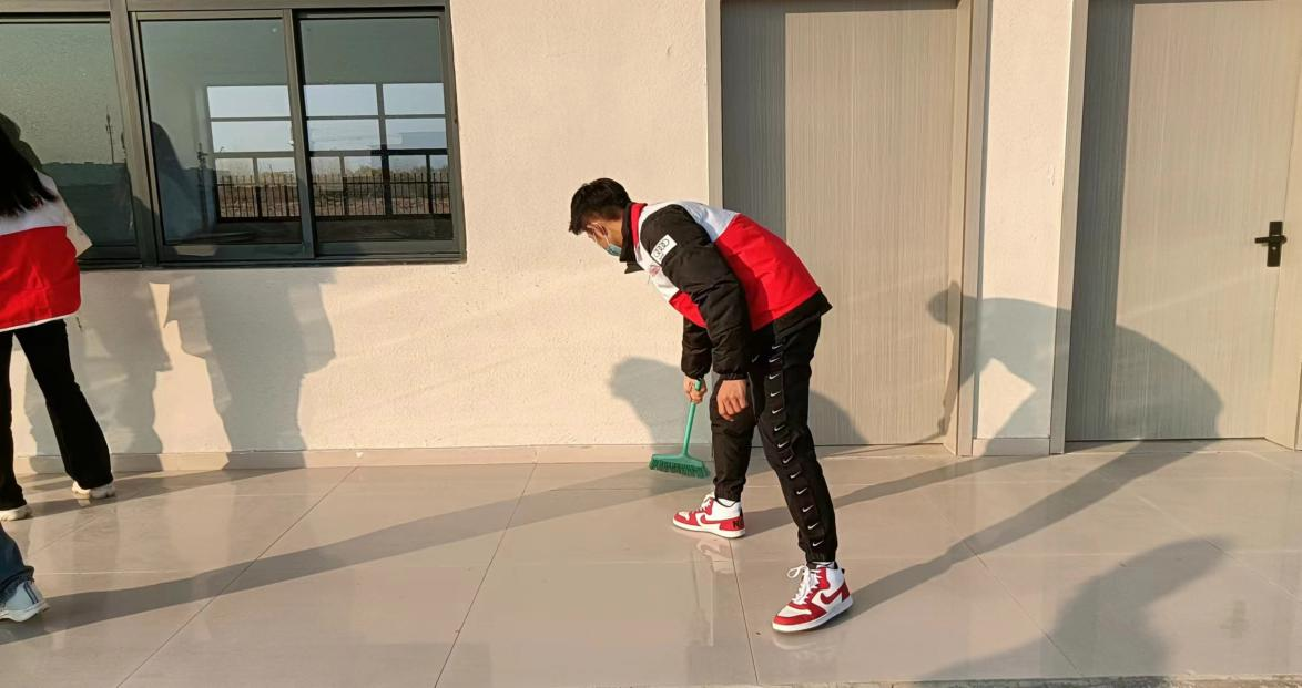 志愿者们身着红色马甲,仔仔细细地打扫实训室地面,清理设备上的灰尘,擦拭门窗,整理实训工具。志愿者们分工合作,井然有序,实训楼的环境焕然如新,避免了脏、乱、差,留下了真、善、美。志愿者们也深刻地感受到为同学办实事的成就感、获得感,体会到这份看似简单的工作中所包含的责任与意义。