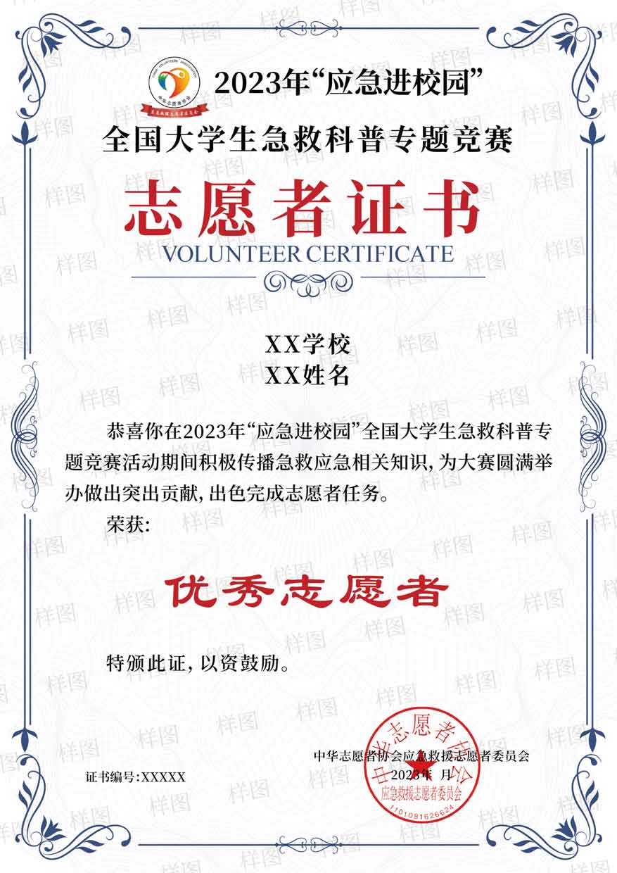 分享50人参与竞赛答题,可获得《卓越志愿者证书》—免费颁发纸质证书、免费颁发电子证书