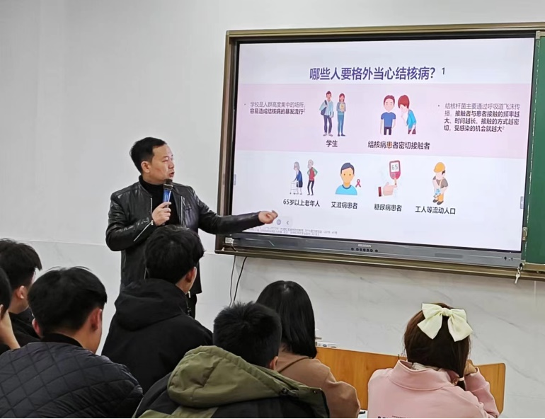为进一步提高我校师生对春季传染病的认识,加强自身防护意识,有效预防控制结核病,积极构建“无核”校园,3月20日,在第29个“世界防治结核病日”来临之际,我校团委联合寿县疾控中心开展了防治结核知识进校园活动,寿县疾控中心工作人员为在校大学生带来“你我共同努力,终结结核流行”为主题的专题讲座,为在我校为大学生普及结核病防治知识。