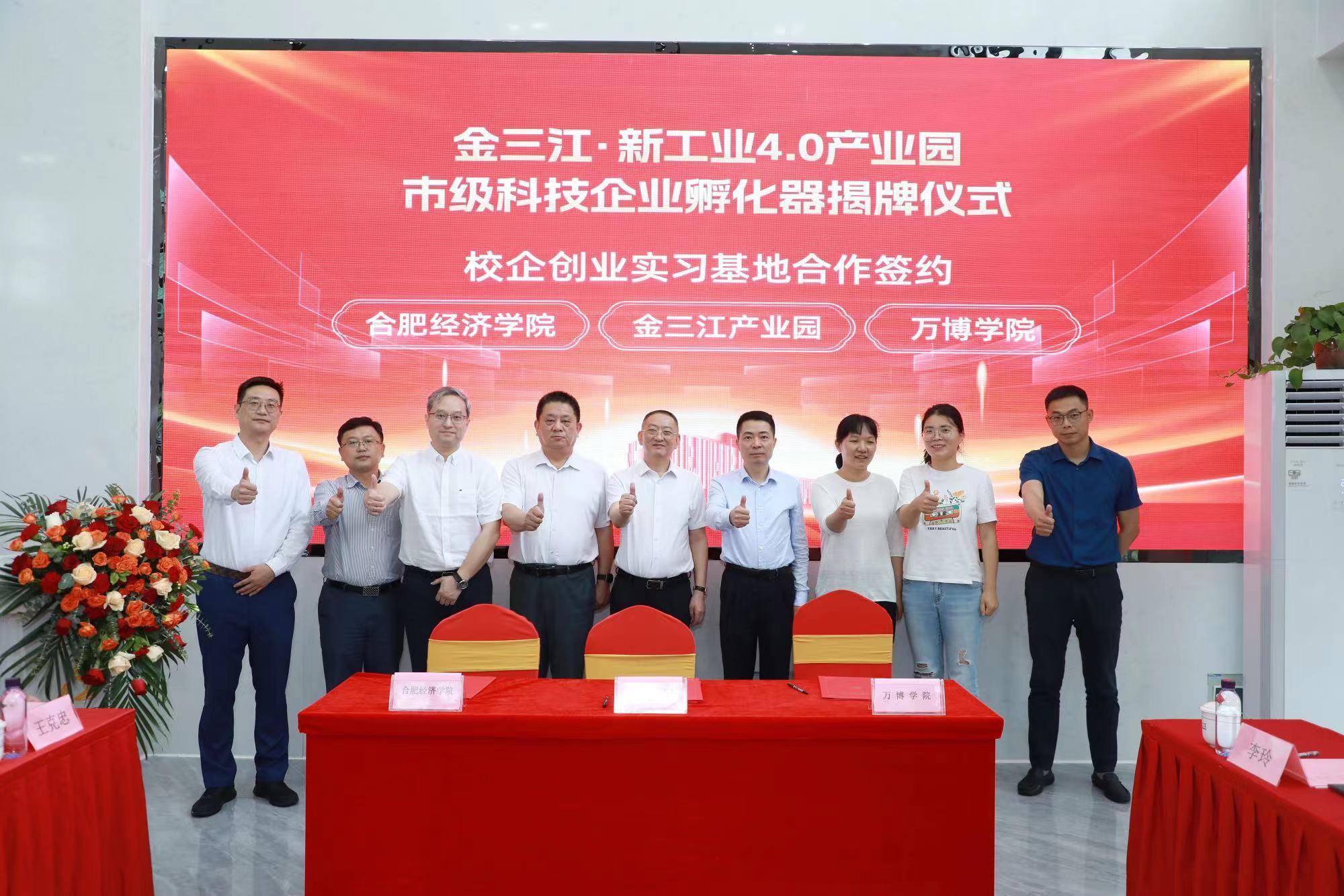 揭牌仪式上,我校与金三江产业园签订了《校企创业实习基地合作协议》,我校符合条件的创业项目可以在该基地孵化,通过企业审批后,可获得创业资金扶持。