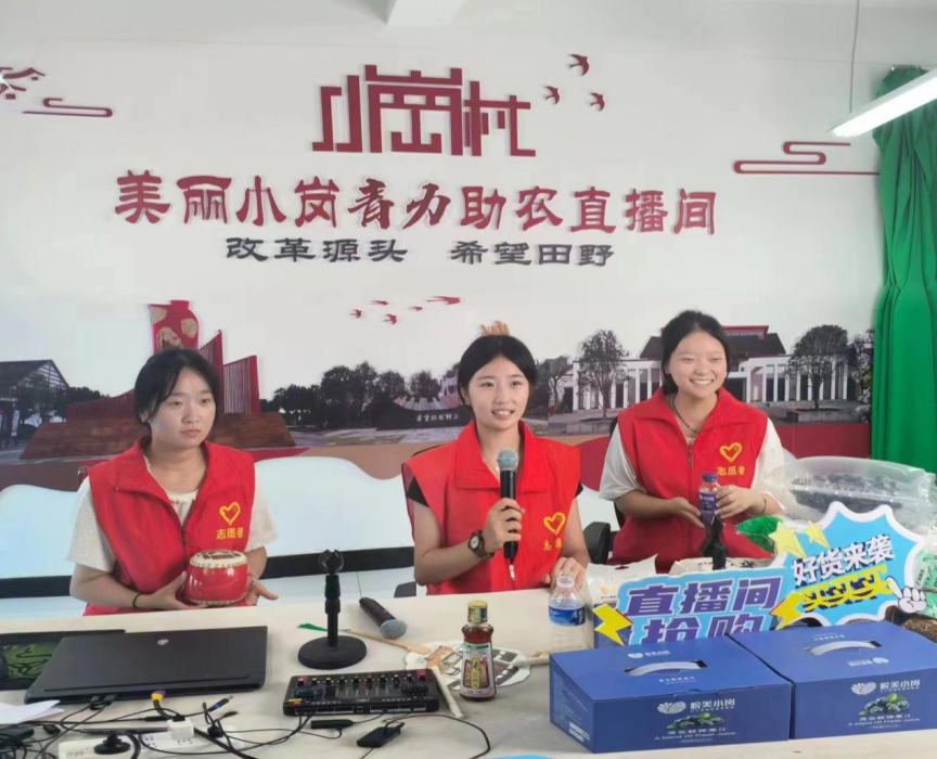 队员们走进小岗村官方抖音号“美丽小岗”直播间,开展乡村振兴助农直播。在直播中,团队成员通过现场展示商品、详细介绍、才艺表演、实时互动等方式,向社会大众介绍小岗村的特色产品,如农产品、手工艺品等,帮助拓宽销售渠道,提升当地产品的知名度和影响力,从而促进农民增收,助力乡村振兴。