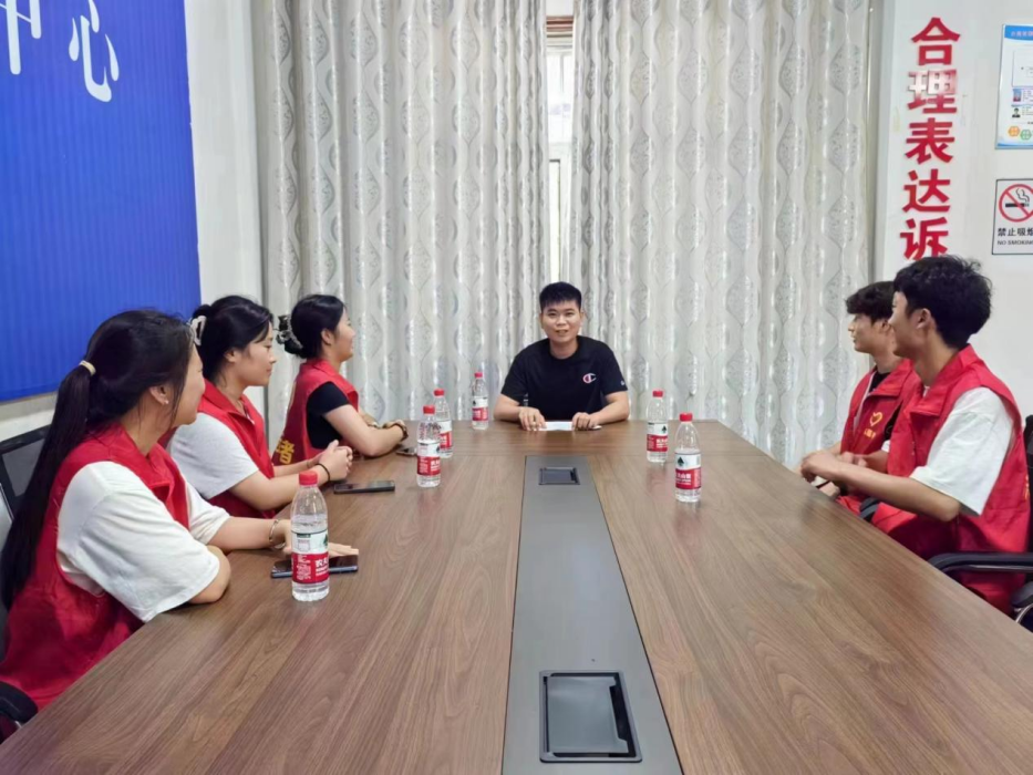 队员们走进小岗村党群服务中心与小岗村团委书记袁肖深入交流。2019年6月,袁肖听闻家乡发展越来越好,他从浙江宁波返乡,开始干起扶贫专干工作。村团委书记袁肖对实践队的到来表示欢迎,并向队员们详细介绍了小岗村的发展成就及未来规划,分享了鼓励青年返乡创业、投身农业现代化的具体举措。实践团队成员认真倾听并积极提问,袁肖书记结合自身实际答疑解惑,在实践队员心中种下了振兴乡村的种子。