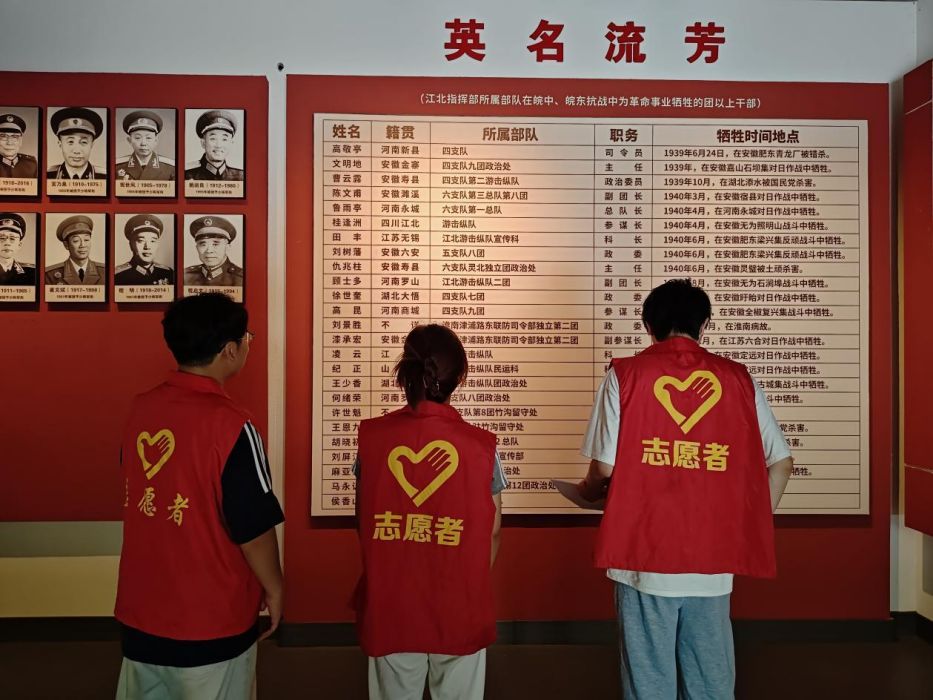 队员们走进庐江县汤池镇新四军江北指挥部纪念馆,重温峥嵘岁月,缅怀革命先烈。从第一展“新四军正式组建 四支队皖中抗敌”到第四展“第2师继续战斗 迎抗战最后胜利”,队员们瞻仰了叶挺、张云逸、徐海东等老一辈革命家雕像,看到了新四军曾使用过的枪械、草鞋和缴获的日本军刀等实物。了解新四军江北指挥部的组成、发展和壮大过程。全方位、多角度地重温了将士们用忠诚热血谱写的抗战历史,真切感受到先烈们为革命事业抛头颅、洒热血的大无畏精神。