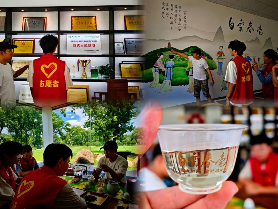 实践队前往汤池镇的安徽白云春亳茶叶基地,漫步茶园,体验茶文旅产业融合的新业态。队员们走进茶园,了解了茶树的生长环境、种植技术以及茶叶的品种和品质等知识,亲身体验了从茶园到茶杯的全过程。队员们与茶基地负责人进行交流,了解茶园管理、茶叶产销、茶旅融合发展现状与规划。此次茶园行队员们拓宽了对茶文旅产业融合的认知,切实感受了现代乡村“农文旅”融合打开乡村振兴新局面。