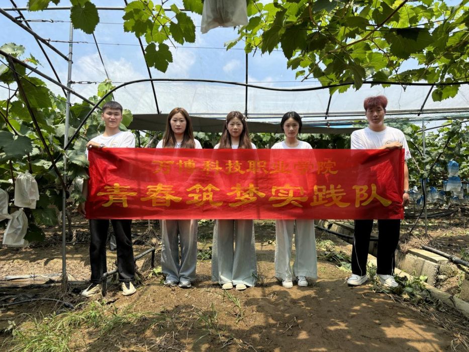第二站,实践团队来到了潜山市痘姆乡仙驾村的葡萄产业园,走进“仙驾葡萄”生长基地,亲身务农,参观乡村振兴产业,感受乡村振兴带来的实实在在的成果。队员们学习修剪葡萄枝蔓和采摘等技巧,探讨大棚防虫网,除草地膜等无公害治理方式,感受科学知识应用的强大。