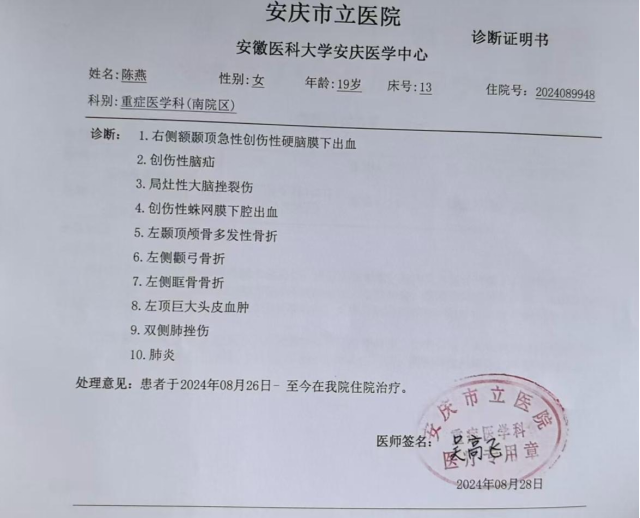 秋季学期开学前夕,我校音乐教育学院2023级学前教育专业学生陈燕在回家途中,突遇重大交通事故,脑部遭受重创,目前已在医院接受两次颅腔手术。其爷爷、奶奶长期服药,父亲残疾,母亲无收入来源,高昂的治疗费用让这个本就经济困难的家庭雪上加霜。