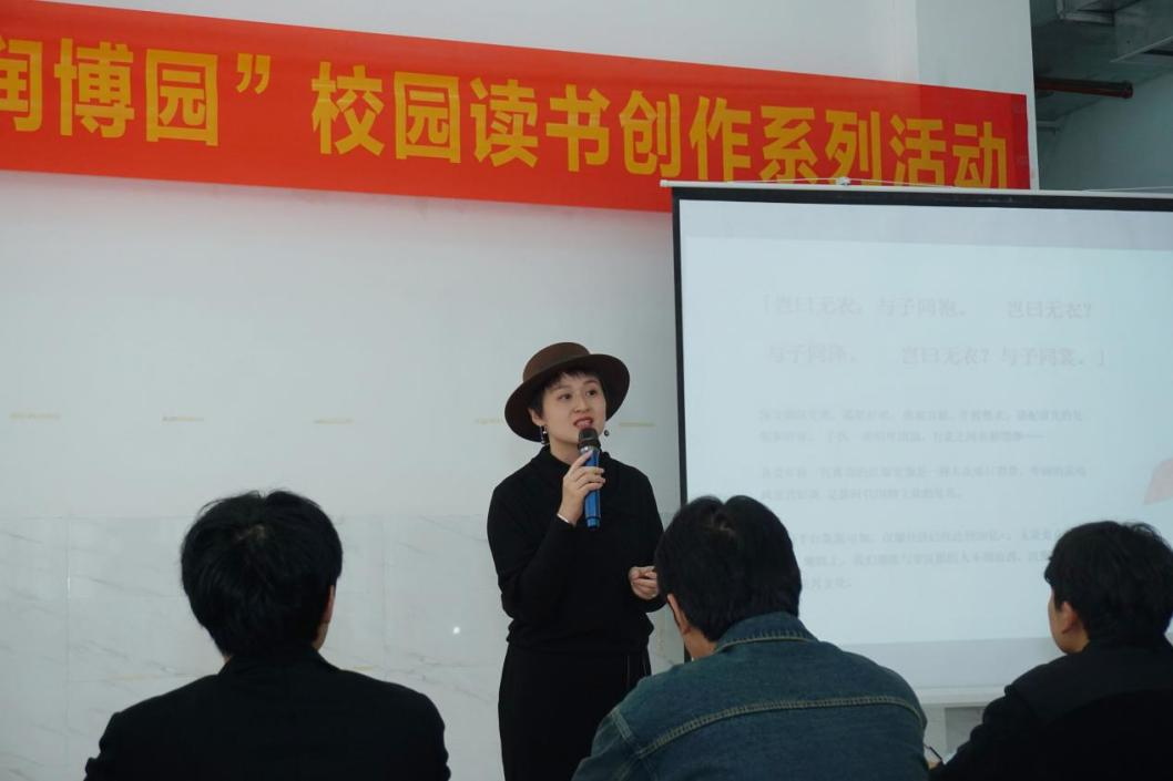 在名师讲座上,为深入挖掘汉服背后的丰富文化内涵,厚植中华优秀传统文化,特邀请音乐教育学院服装与服饰设计专业教师任本慧开展《汉服文化的多维剖析:历史、文化与审美维度的深度探究》专场讲座。讲座上,任本慧从历史维度详细梳理汉服从起源到不同历史时期的演变脉络;从文化维度深入挖掘汉服所蕴含的中华民族的价值观、伦理道德、礼仪制度等文化元素;从审美维度带领大家分析汉服独特的形制美、色彩美和纹饰美。此次讲座让大家对汉服文化有了系统、全面、深刻地了解,为后续相关专业学生的自主创作夯实基础。