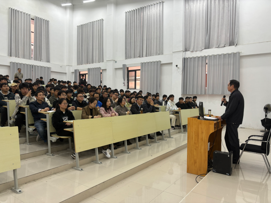为深入学习宣传贯彻习近平新时代中国特色社会主义思想和全国教育大会精神,推进习近平新时代中国特色社会主义思想“进课堂、进教材、进头脑”,11月13日下午,学校督导专员、党委书记鲍习生走进思政课堂,为交通工程学院新能源汽车检测与维修技术专业的近200名同学们讲授了一堂学思践悟、指导成长的“形势与政策”大课。
