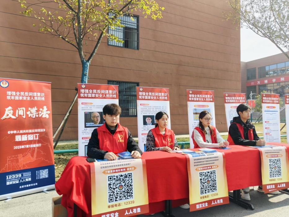 为践行总体国家安全观,提高反间谍防范能力,筑牢国家安全人民防线,增强维护国家安全的责任感和使命感,营造“国家安全,人人有责”的浓厚氛围,我校学生会于11月21日在校园内举办了反间谍法宣传活动,合肥市国家安全局工作人员亲临现场指导。