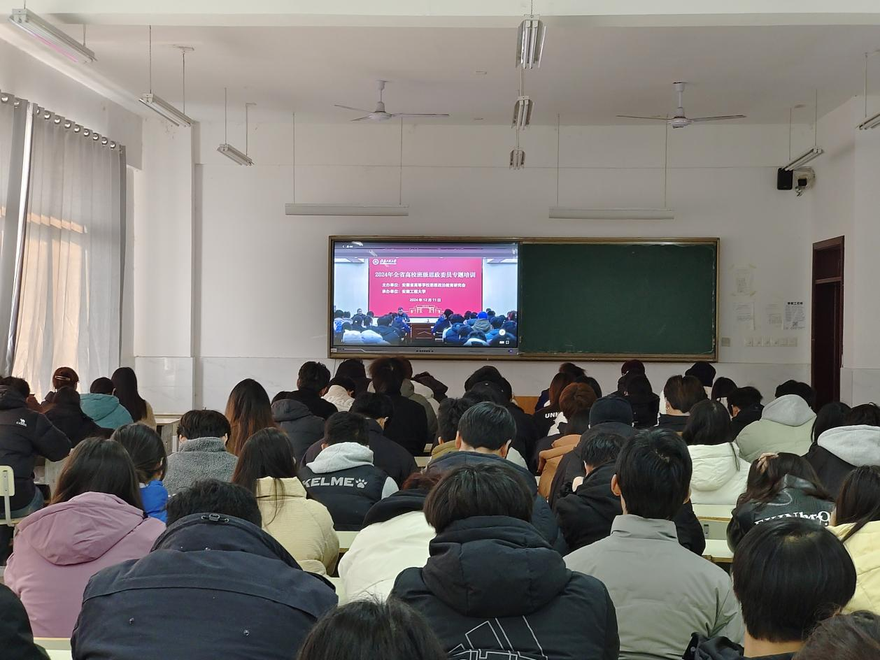 为深入实施新时代立德树人工程,突出大学生在思想政治教育中的主体地位,充分发挥学生骨干桥梁和纽带作用,12月11下午,安徽省高等学校思想政治教育研究会组织开展全省高校班级思政委员专题培训会,我校组织全校75名班级思政委员在2201教室参加培训。
