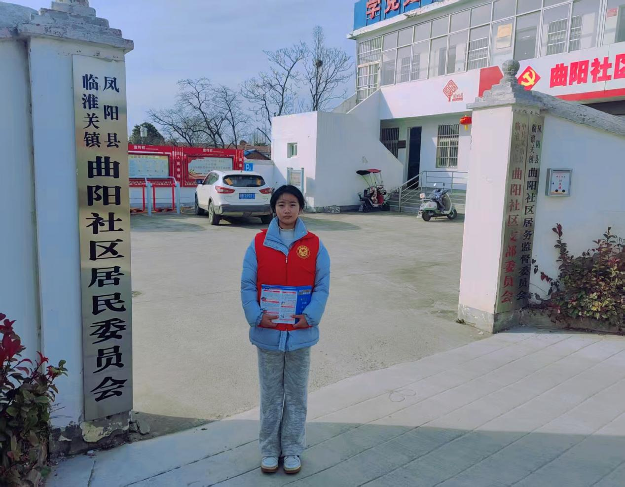 2025年寒假,丁子蕊积极参与了“返家乡”社会实践活动,在安徽省凤阳县临淮关镇曲阳社区担任志愿者。她专注于农村地区电信诈骗的预防宣传工作,鉴于当地信息相对闭塞,居民尤其是老年人容易成为诈骗分子的目标。